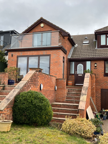 This project involved a ground floor extension, with the upper floor bedroom redesigned to include a walk-out balcony finished with a glass balustrade.